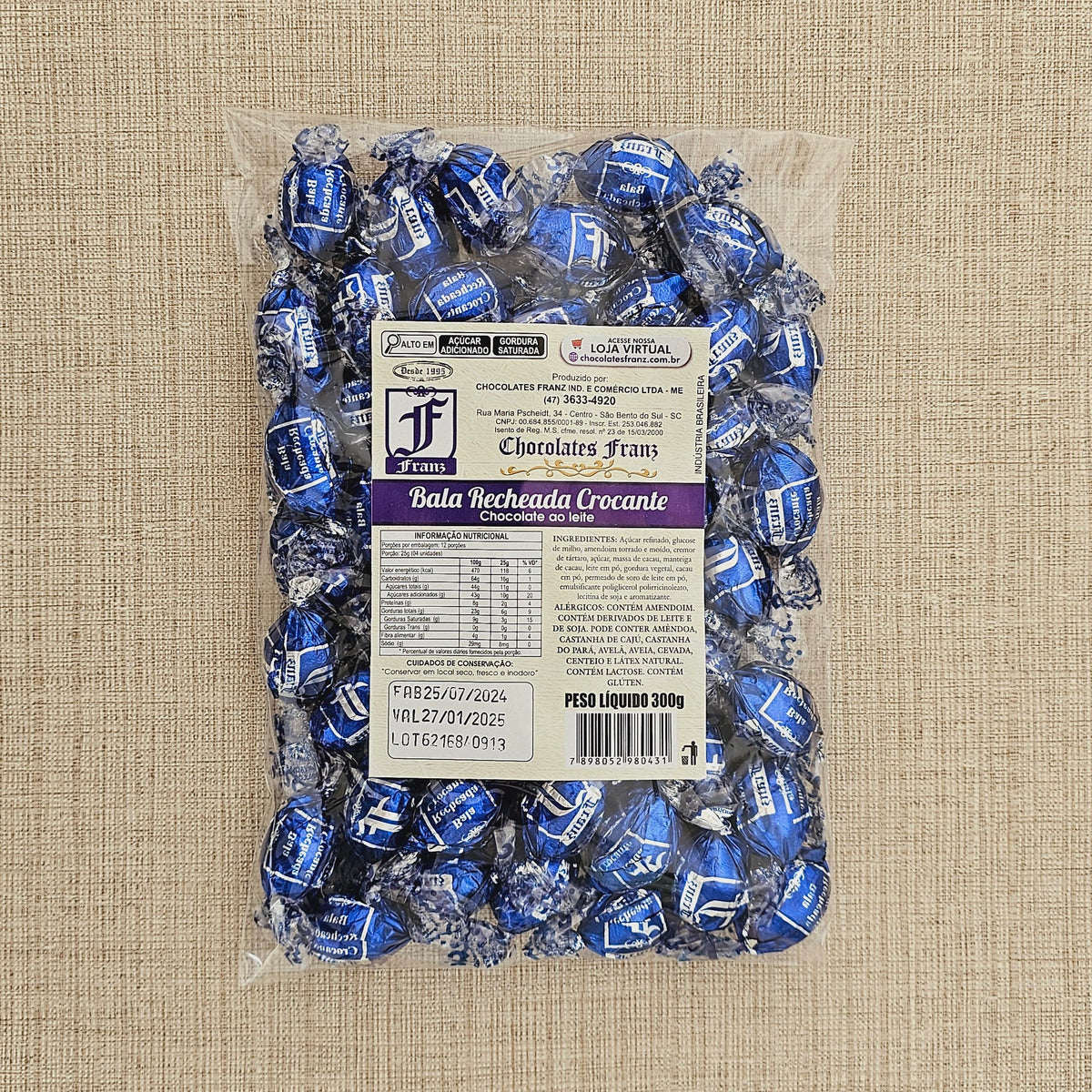 A Bala Recheada Crocante é nosso produto mais tradicional e desde o início é embalada com o papel azul!