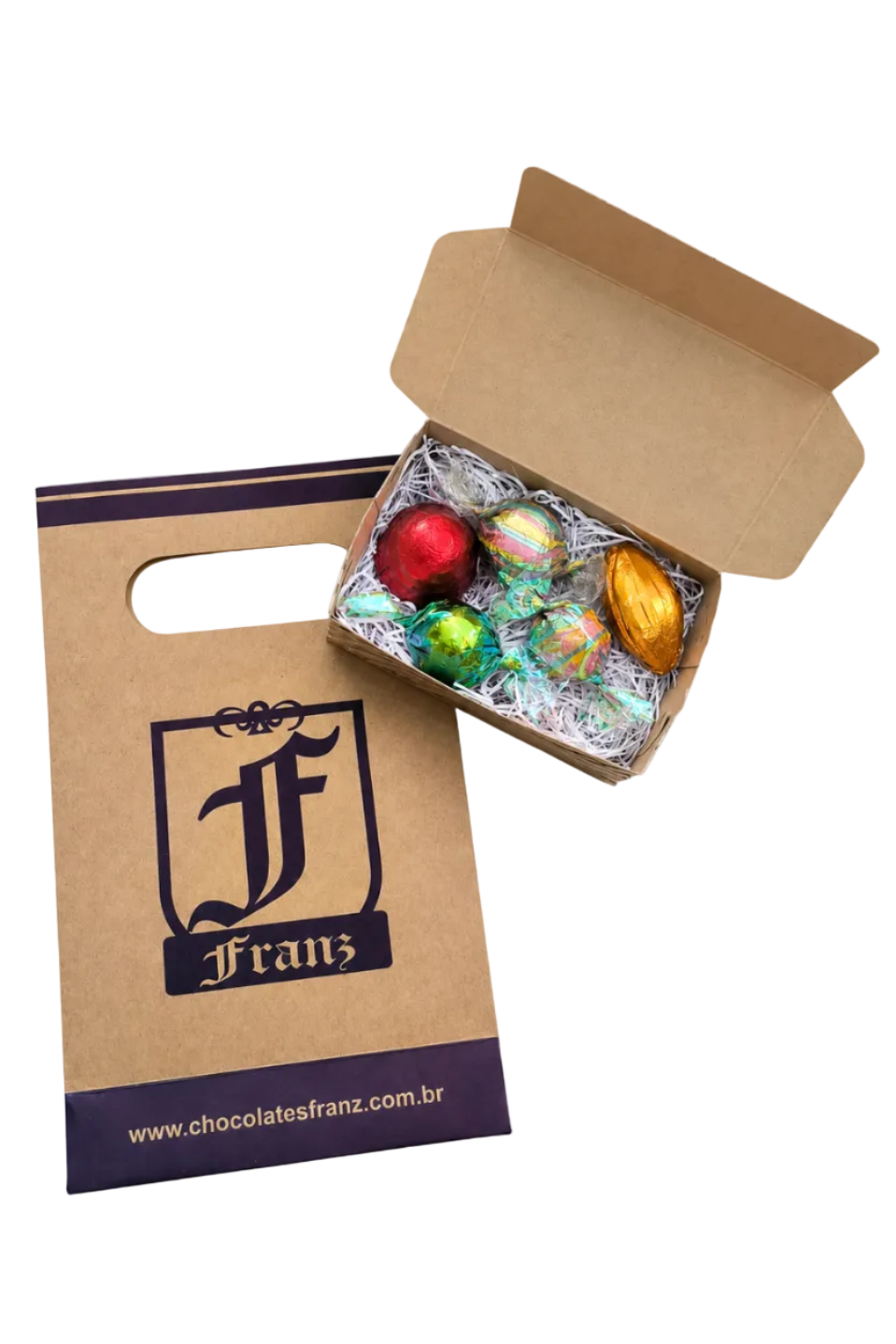 Dimensões da caixa com 5 bombons 78 g: 12 cm Largura X 8cm Altura X 3,5cm Profundidade.